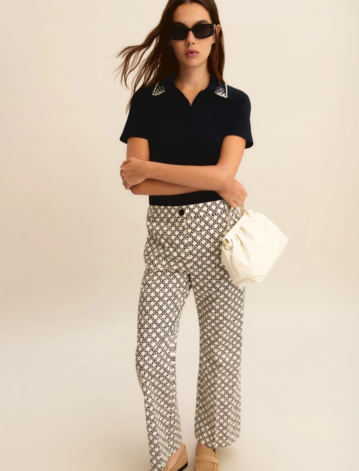EMME MARELLA - PRINTED TWILL TROUSERS