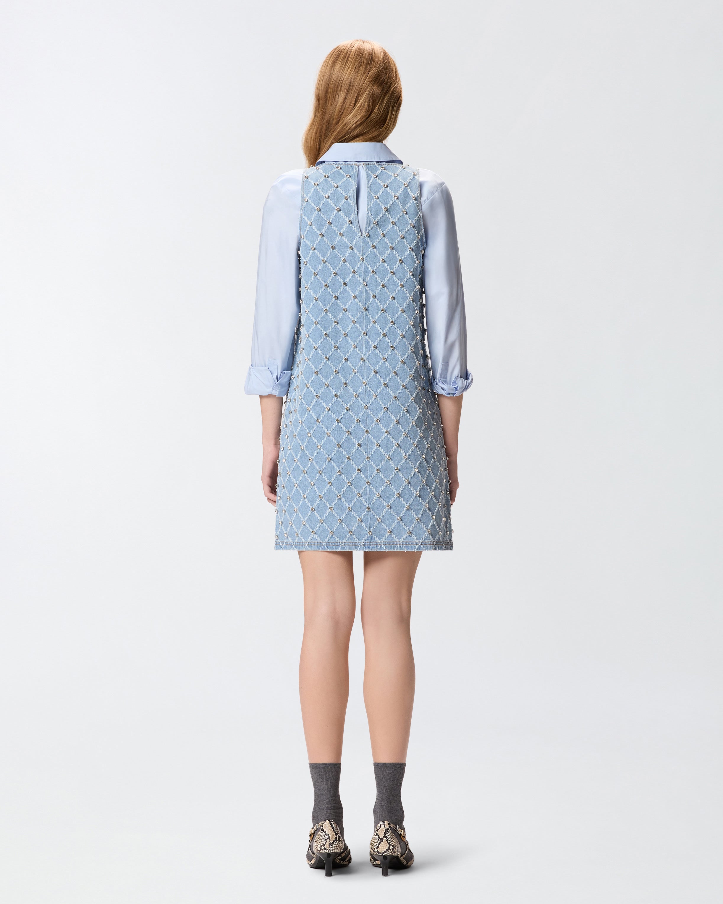 PINKO - DENIM MINI DRESS WITH DIAMOND AND RHINESTONE