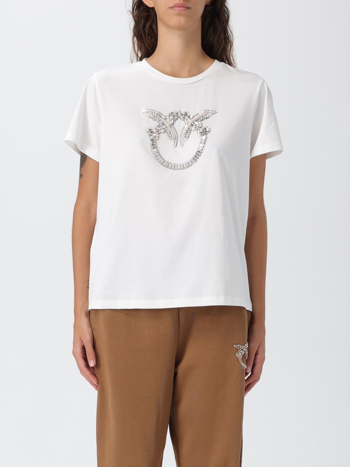 PINKO - T-SHIRT WITH DECORATED LOVE BIRDS LOGO